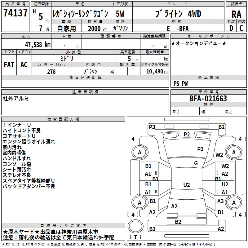 SUBARU LEGACY TOURING WAGON - лот 74137