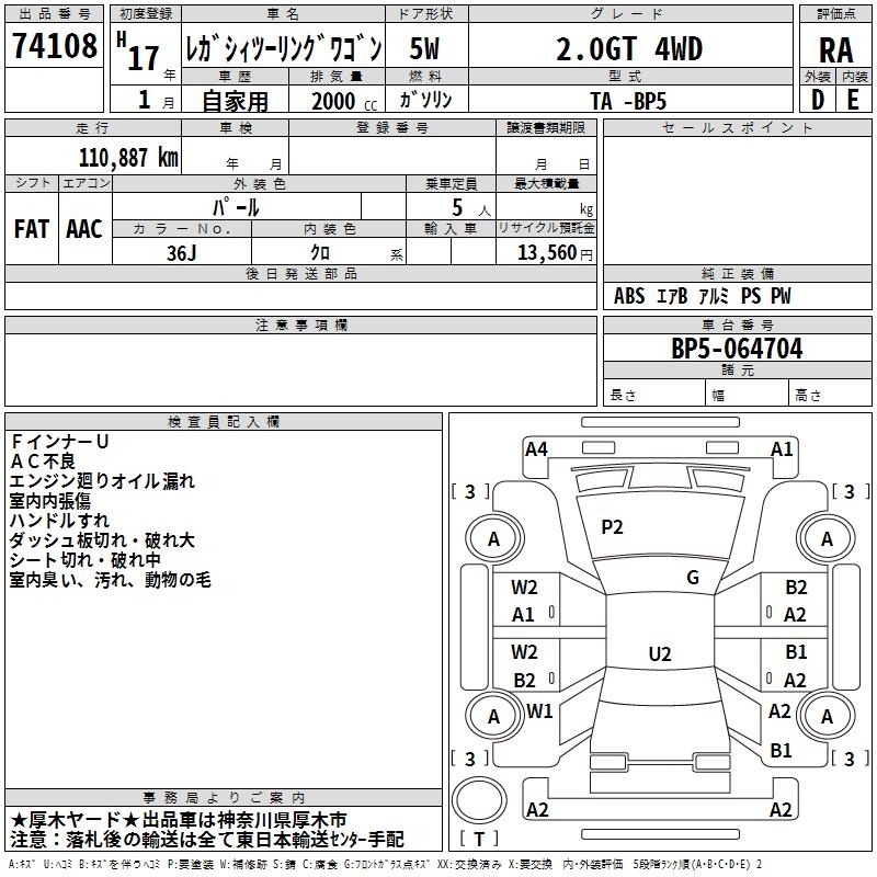Все аукционы SUBARU LEGACY TOURING WAGON