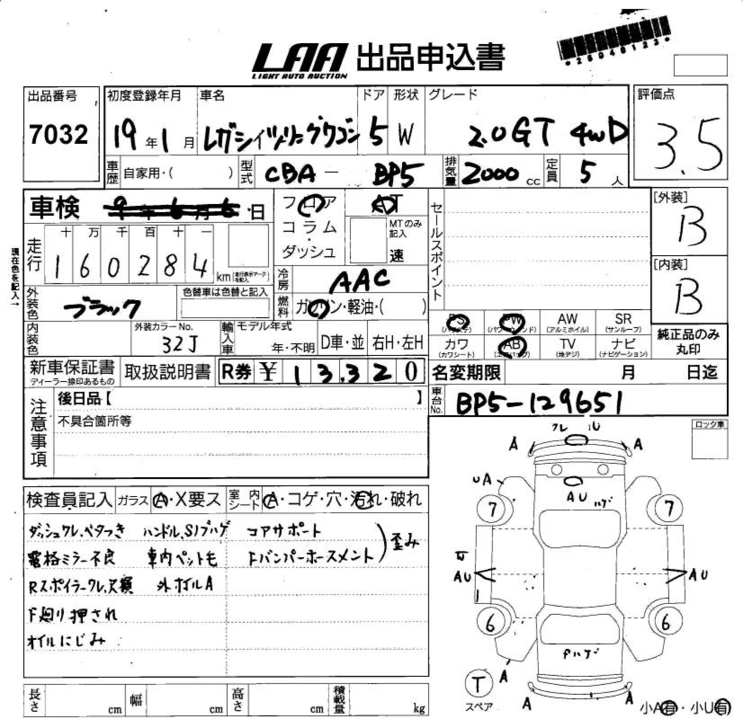 SUBARU LEGACY TOURING WAGON - лот 7032