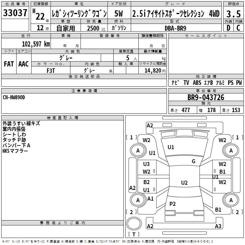 SUBARU LEGACY TOURING WAGON - лот 33037