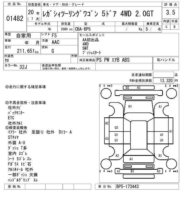 SUBARU LEGACY TOURING WAGON - лот 1482