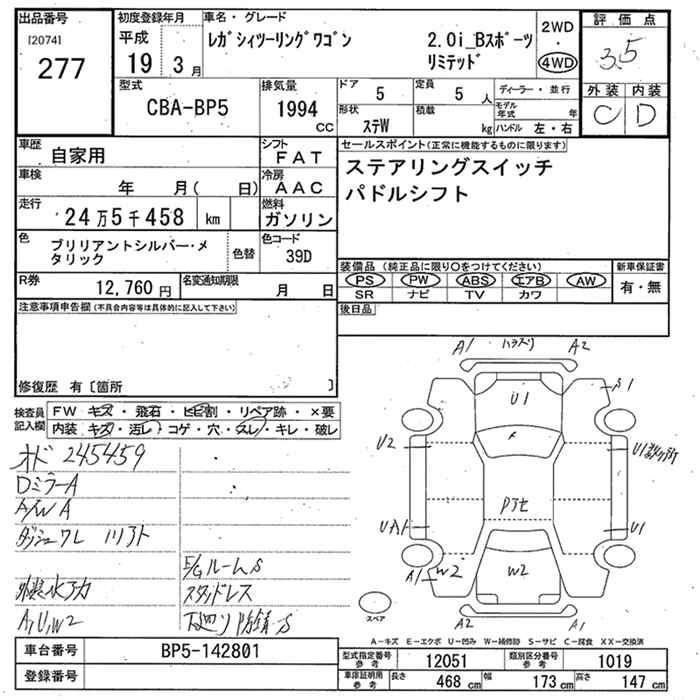 SUBARU LEGACY TOURING WAGON - лот 277