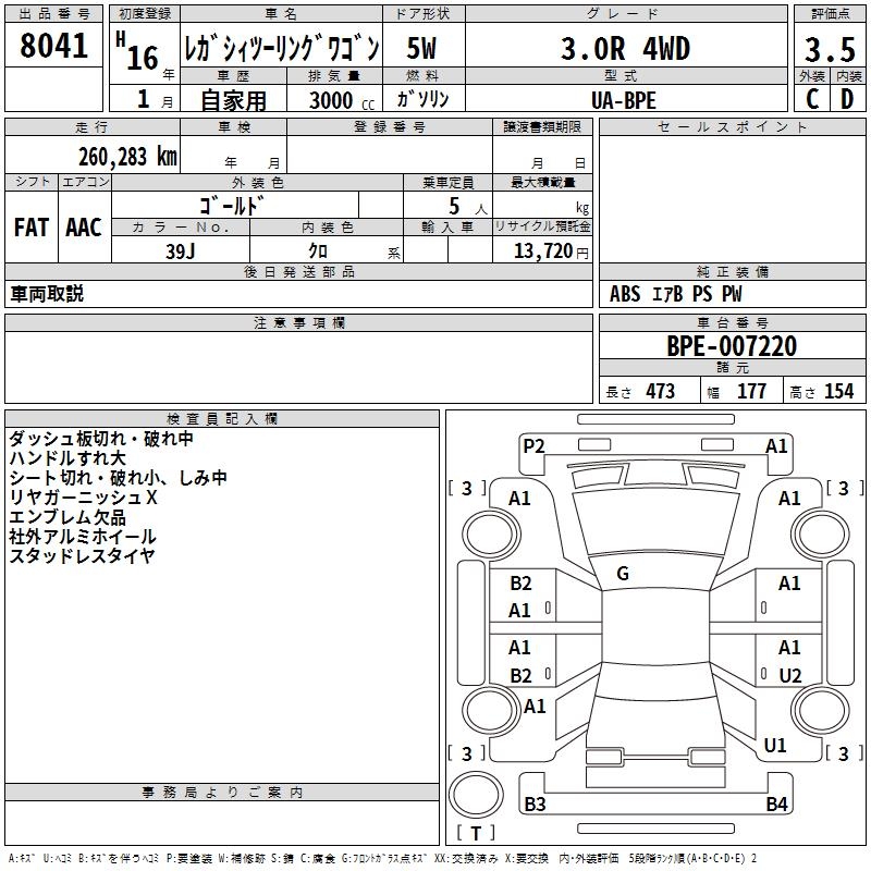 SUBARU LEGACY TOURING WAGON - лот 8041