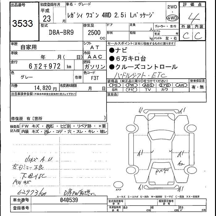 SUBARU LEGACY WAGON - лот 3533