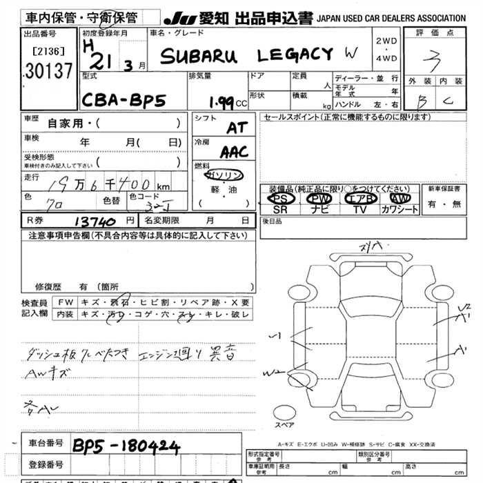 Все аукционы SUBARU LEGACY WAGON