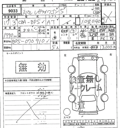 SUBARU LEGACY WAGON - лот 9033