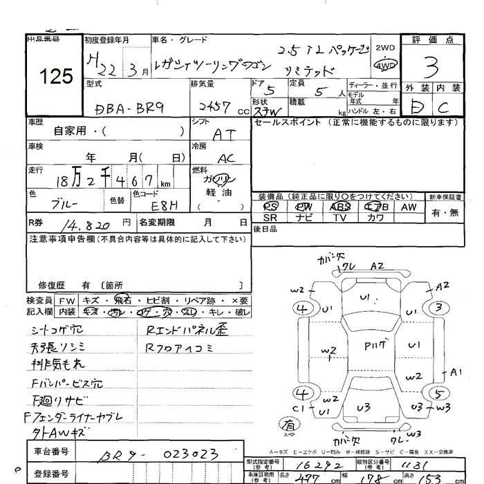 SUBARU LEGACY WAGON - лот 125