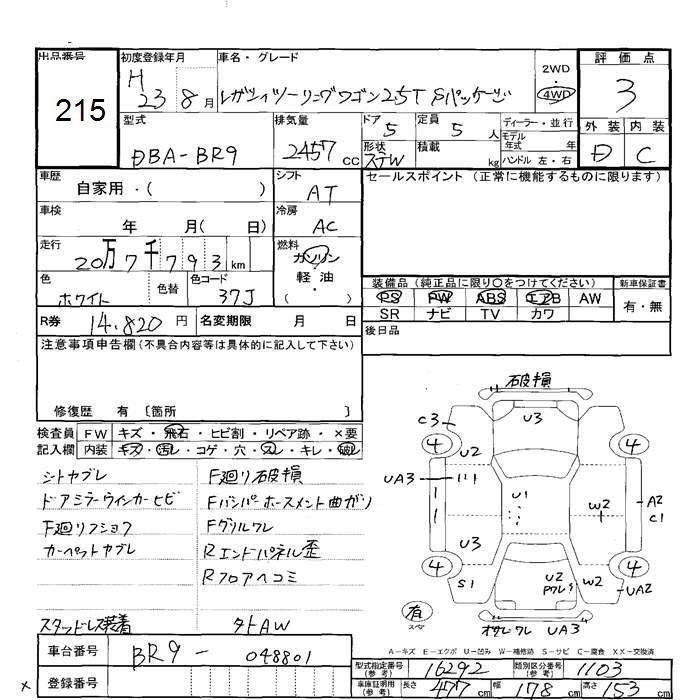 SUBARU LEGACY WAGON - лот 215