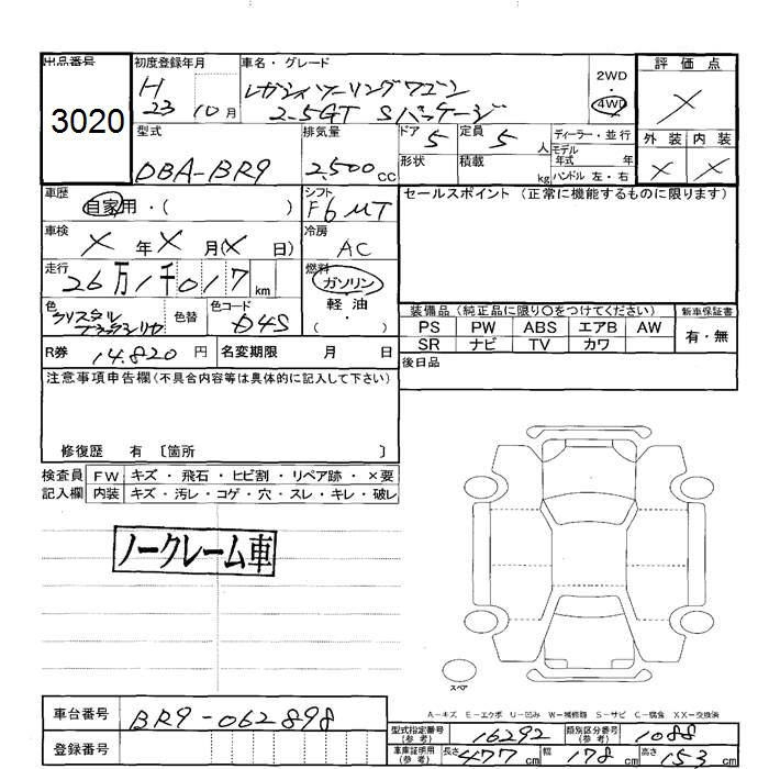 SUBARU LEGACY WAGON - лот 3020