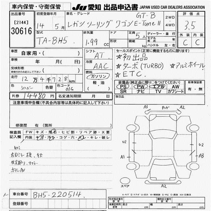 SUBARU LEGACY WAGON - лот 30616