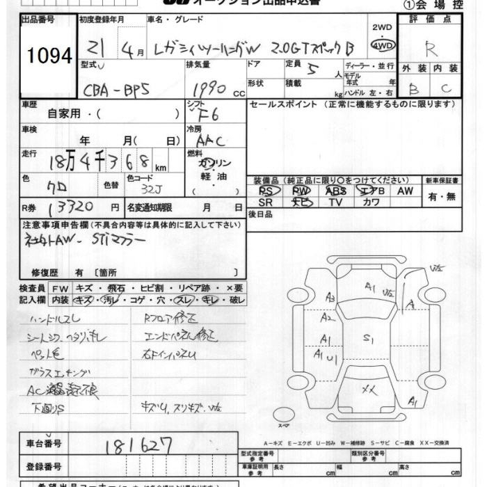 Все аукционы SUBARU LEGACY WAGON