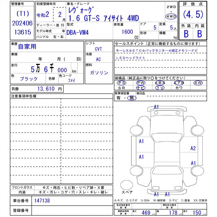 SUBARU LEVORG - лот 39768