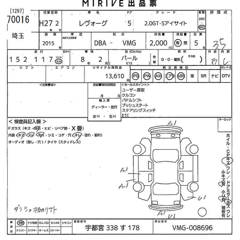 SUBARU LEVORG 2.0GT-S EYESIGHT - лот 70016