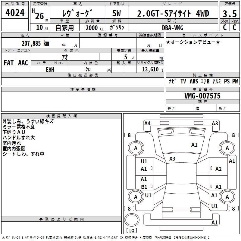 SUBARU LEVORG 2.0GT-S EYESIGHT 4WD - лот 4024
