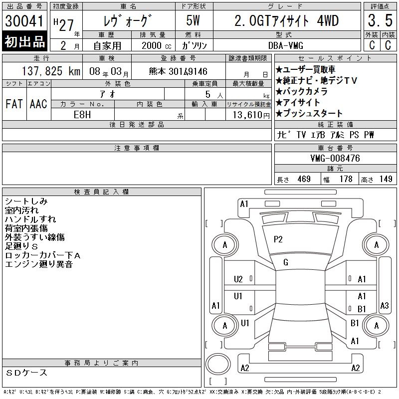 SUBARU LEVORG 2.0GT EYESIGHT 4WD - лот 30041