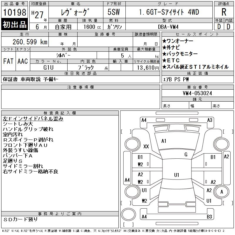 SUBARU LEVORG 1.6GT-S EYESIGHT 4WD - лот 10198