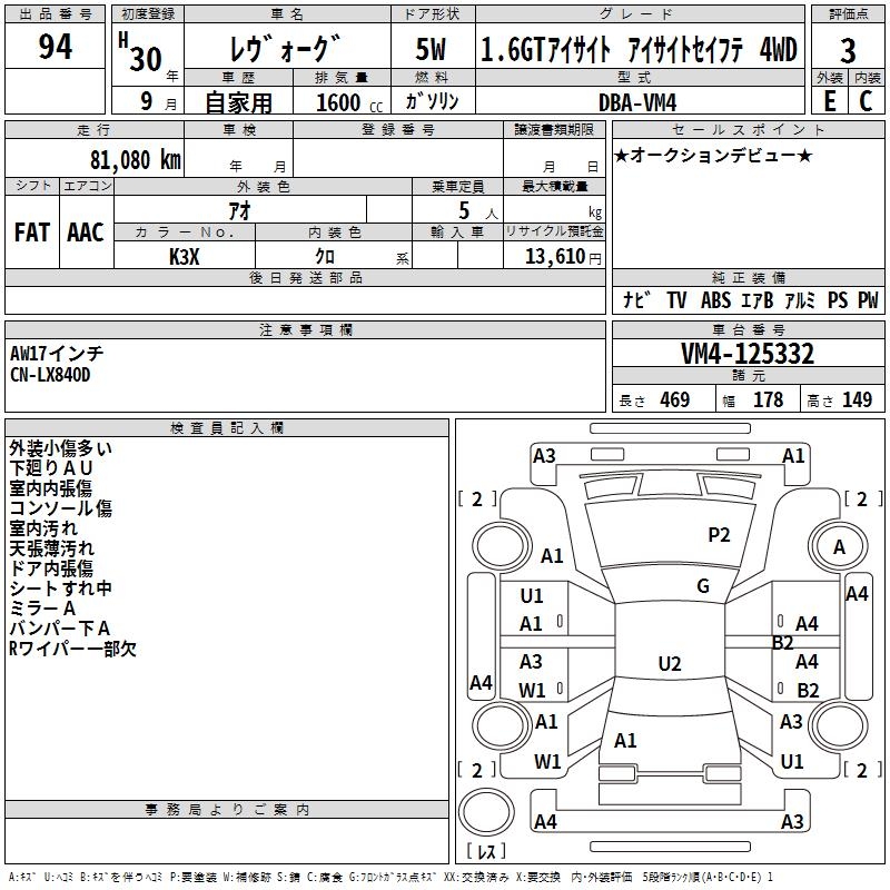 SUBARU LEVORG 1.6GT EYESIGHT 4WD - лот 94