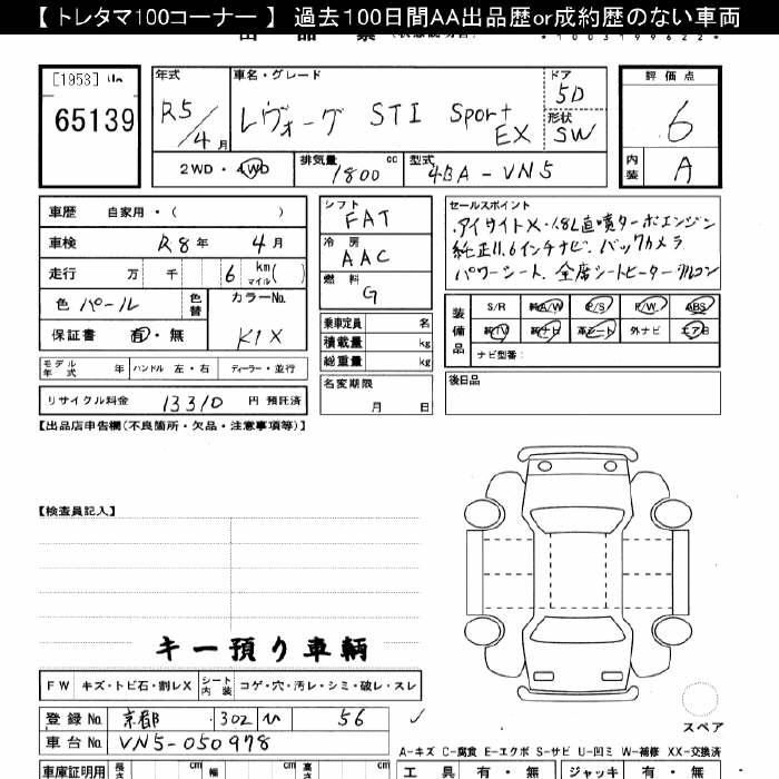SUBARU LEVORG 4WD STI спорт EX - лот 65139