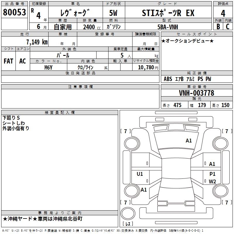SUBARU LEVORG STI SPORT R EX - лот 80053