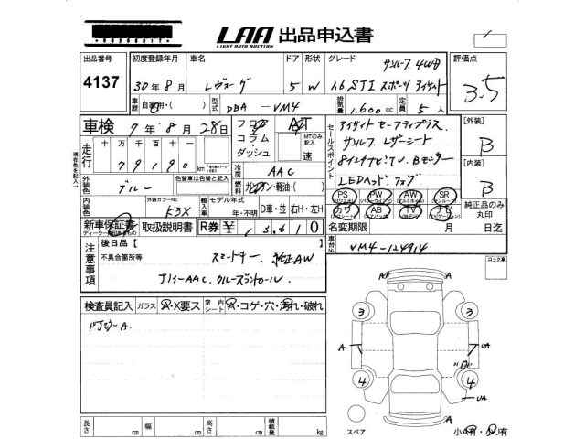 SUBARU LEVORG 1.6STI спорт EyeSight - лот 4137