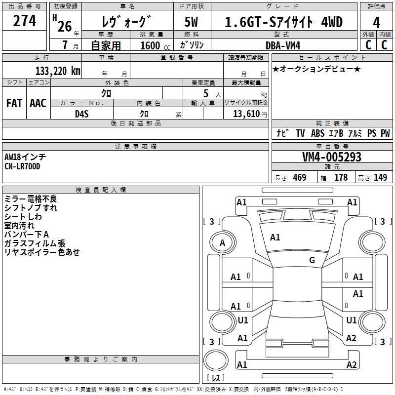 SUBARU LEVORG 1.6GT-S EYESIGHT 4WD - лот 274
