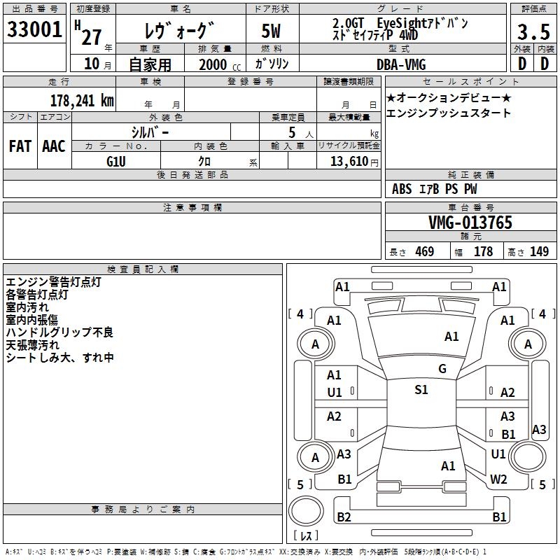 SUBARU LEVORG 2.0GT EYESIGHT MARKS 4WD - лот 33001