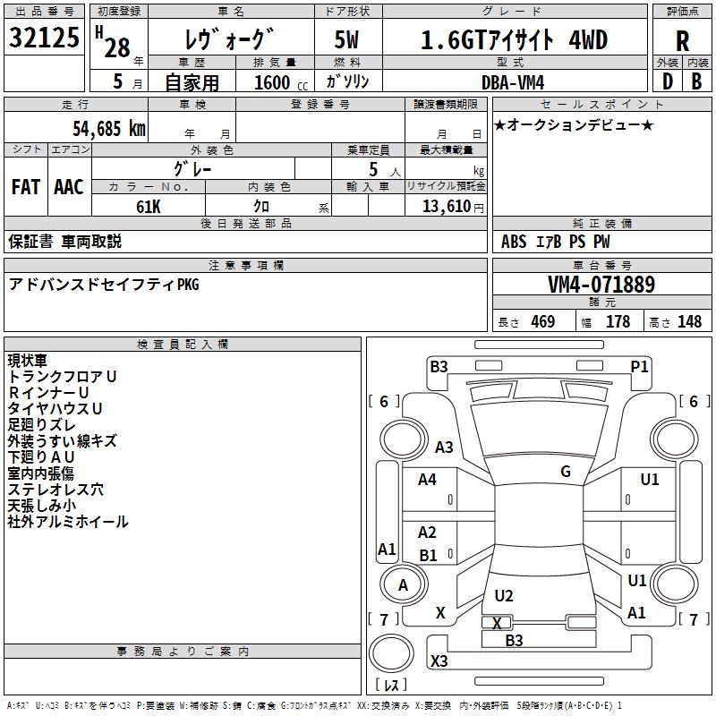 SUBARU LEVORG 1.6GT EYESIGHT 4WD - лот 32125