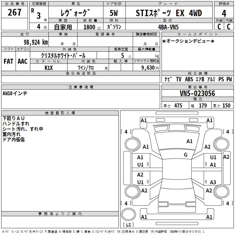 SUBARU LEVORG STI SPORT EX 4WD - лот 267