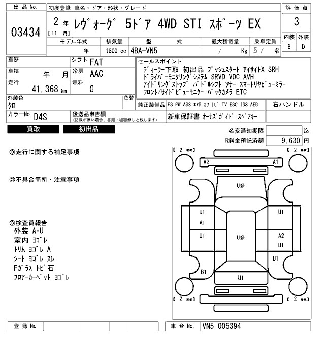 SUBARU LEVORG STI SPORT EX - лот 3434