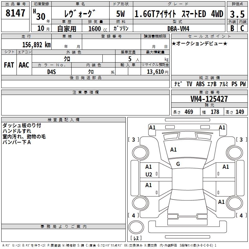 SUBARU LEVORG 1.6GT EYESIGHT SMART E 4WD - лот 8147