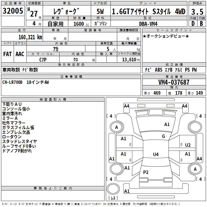 SUBARU LEVORG 1.6GT EYESIGHT S STYLE 4WD - лот 32005