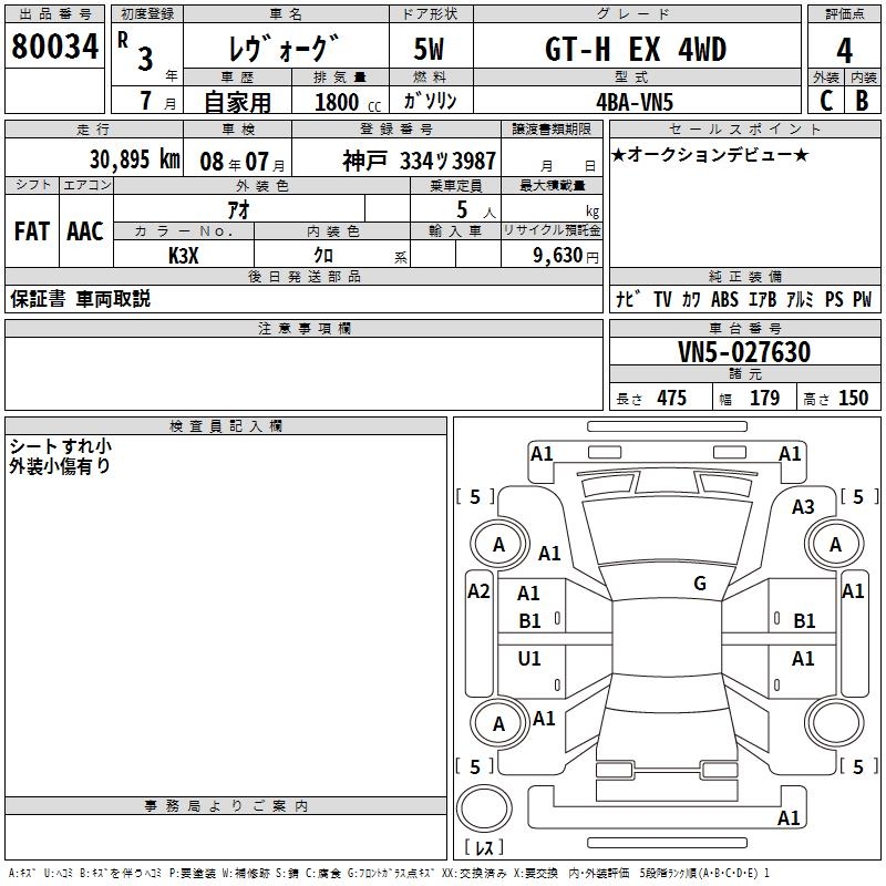 SUBARU LEVORG GT-H EX 4WD - лот 80034