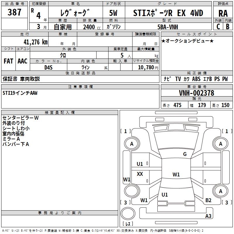 SUBARU LEVORG STI SPORT R EX 4WD - лот 387