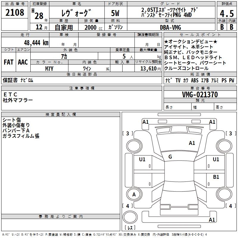 SUBARU LEVORG 2.0STI SPORT EYESIGHT 4WD - лот 2108