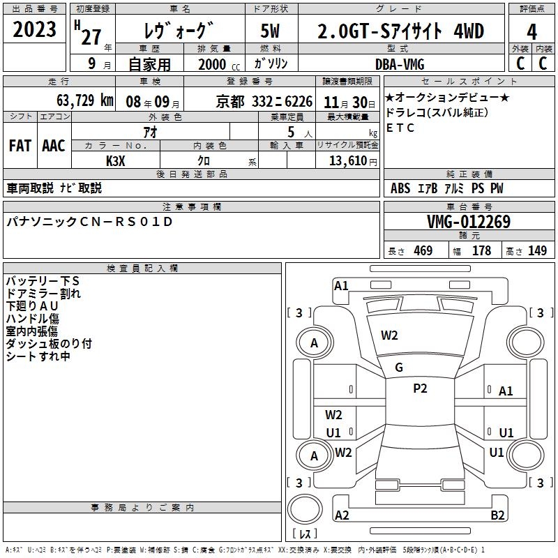 SUBARU LEVORG 2.0GT-S EYESIGHT 4WD - лот 2023
