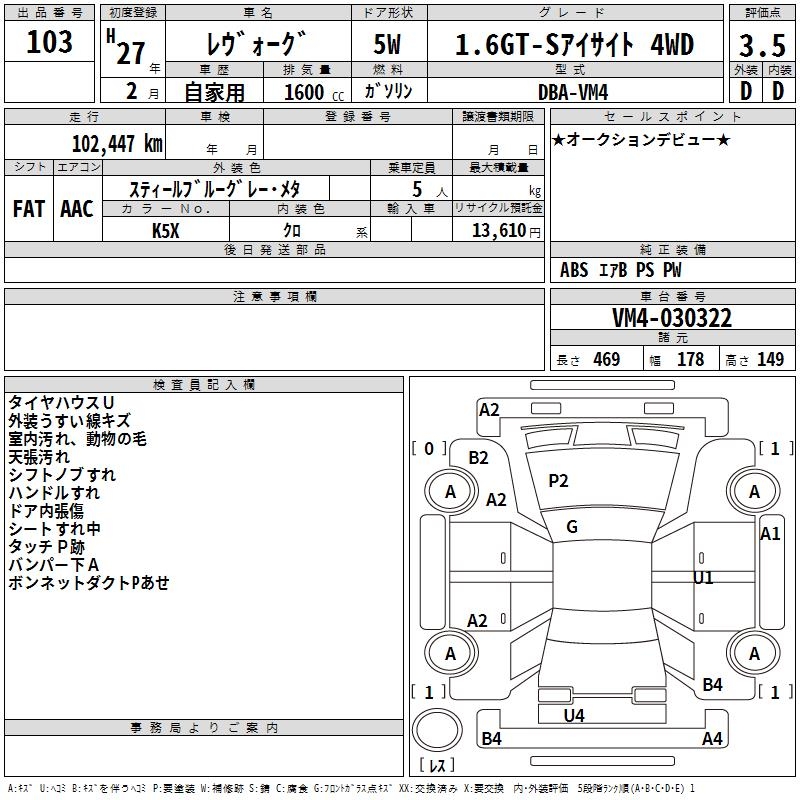 SUBARU LEVORG 1.6GT-S EYESIGHT 4WD - лот 103