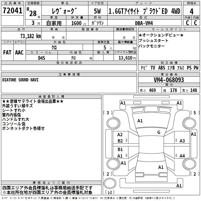 SUBARU LEVORG 1.6GT EYESIGHT PRA UTO4WD - лот 72041