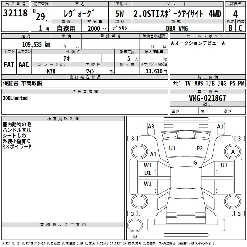 Все аукционы SUBARU LEVORG