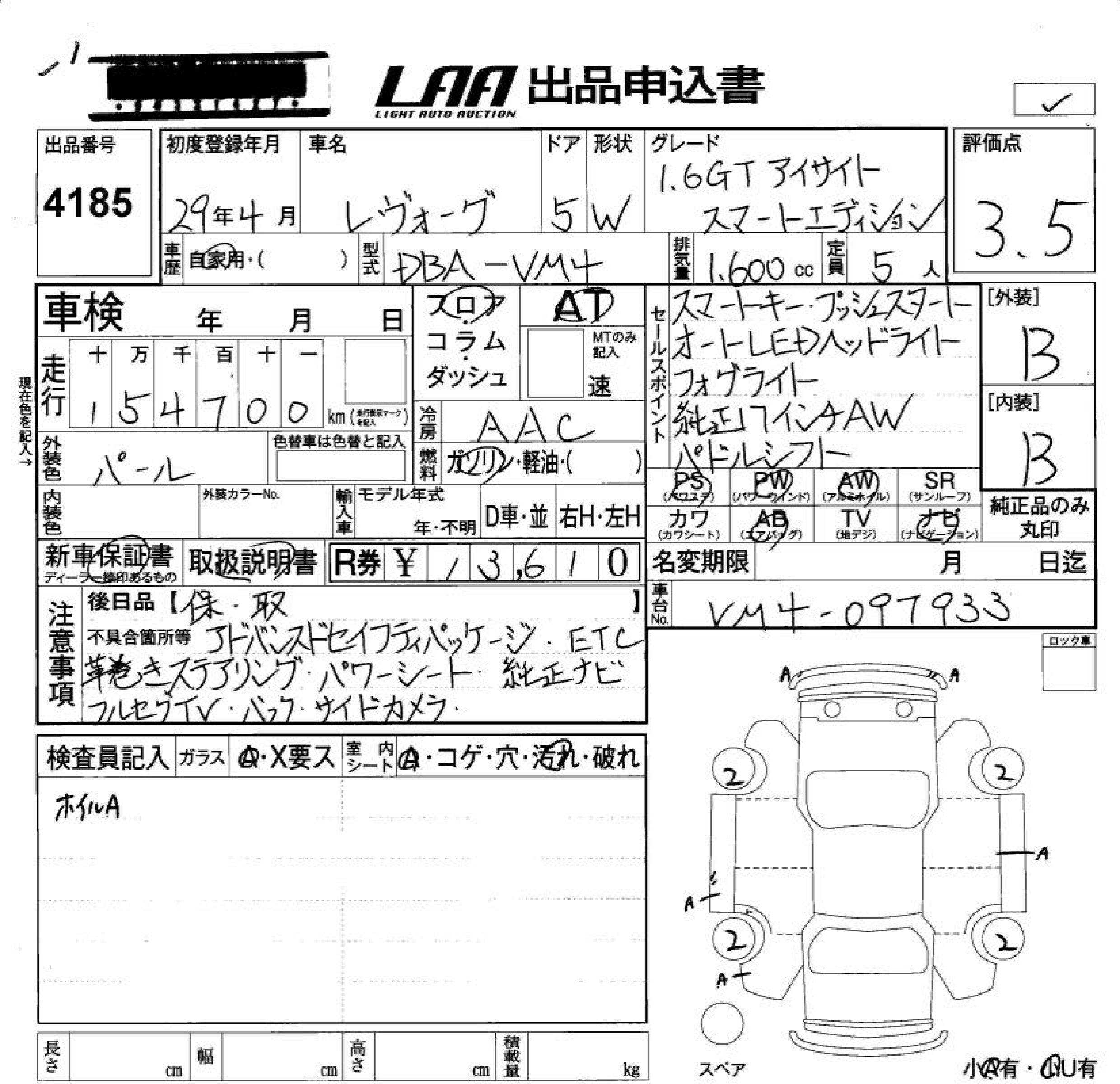 Все аукционы SUBARU LEVORG