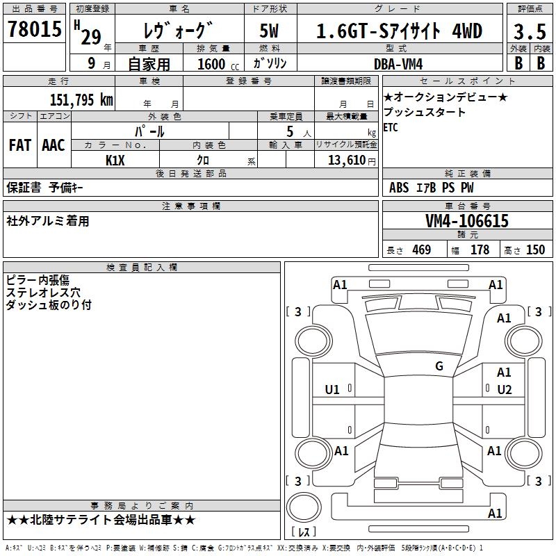 SUBARU LEVORG 1.6GT-S EYESIGHT 4WD - лот 78015
