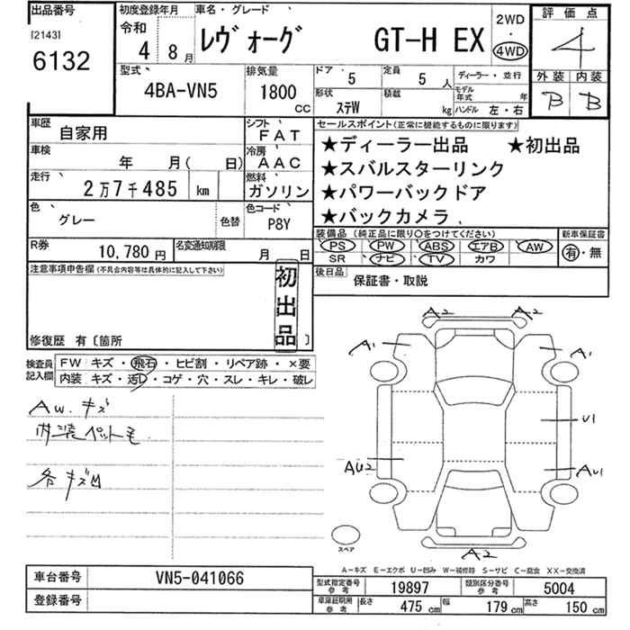 SUBARU LEVORG GT-H EX 4WD - лот 6132