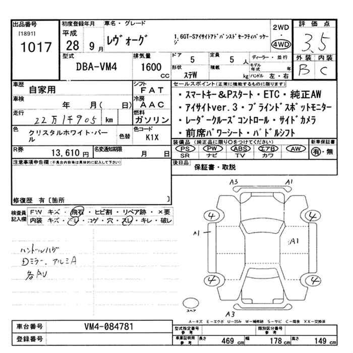 SUBARU LEVORG 1.6GT-S EYESIGHT ADVANCE DO SAFETY PACK - лот 1017