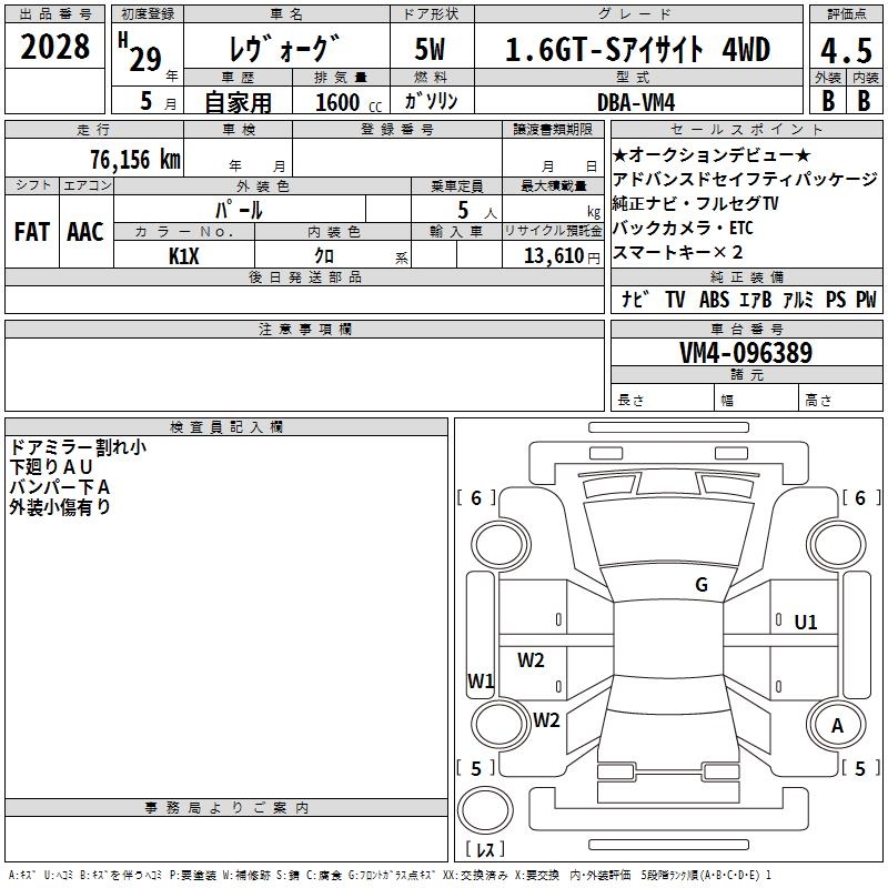 SUBARU LEVORG 1.6GT-S EYESIGHT 4WD - лот 2028