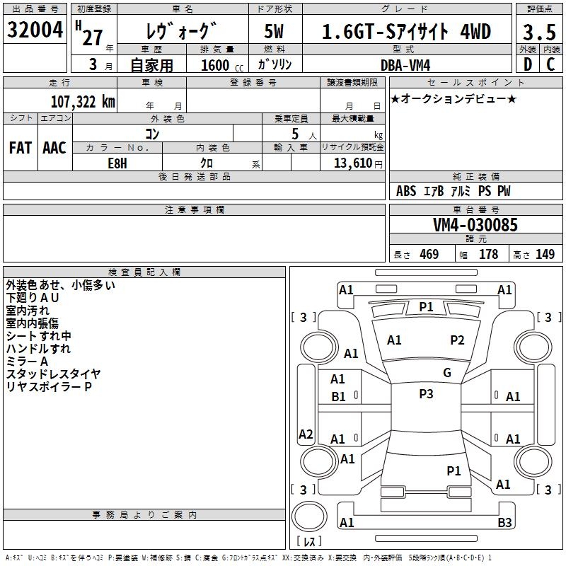 SUBARU LEVORG 1.6GT-S EYESIGHT 4WD - лот 32004