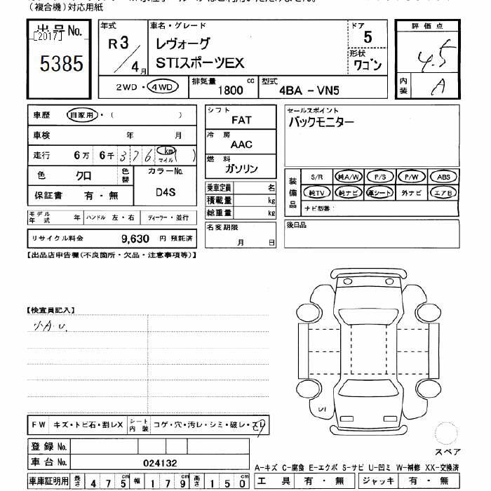 SUBARU LEVORG 4WD STI SPORT EX - лот 5385