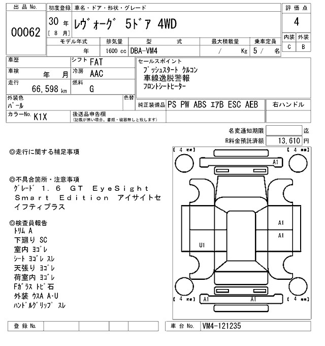 SUBARU LEVORG - лот 62