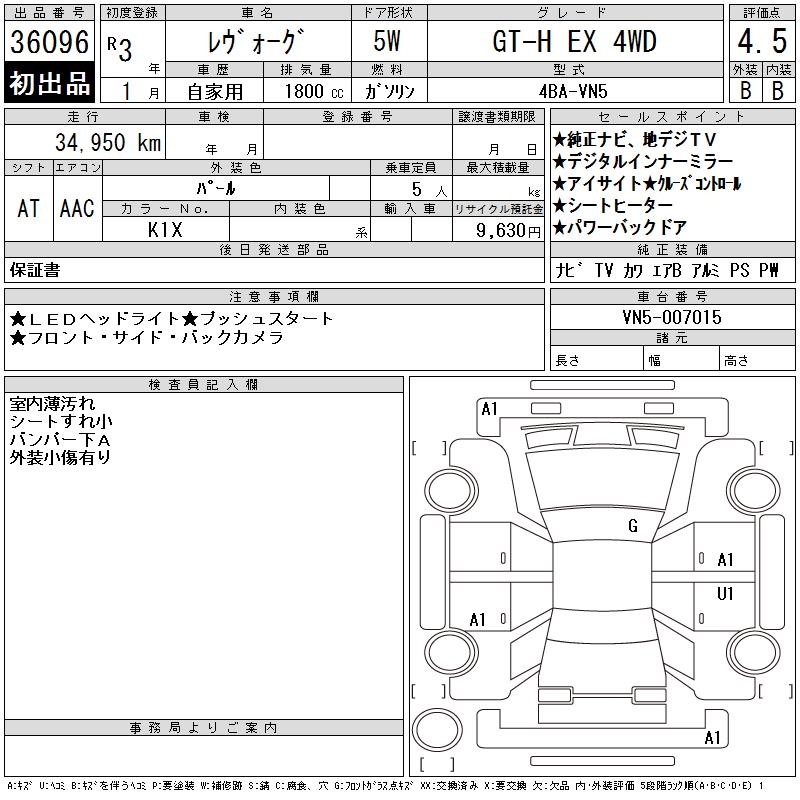 SUBARU LEVORG GT-H EX 4WD - лот 36096