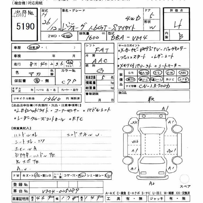 SUBARU LEVORG 4WD 1.6GT-S EYESIGHT - лот 5190