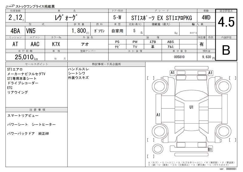 SUBARU LEVORG - лот 20007