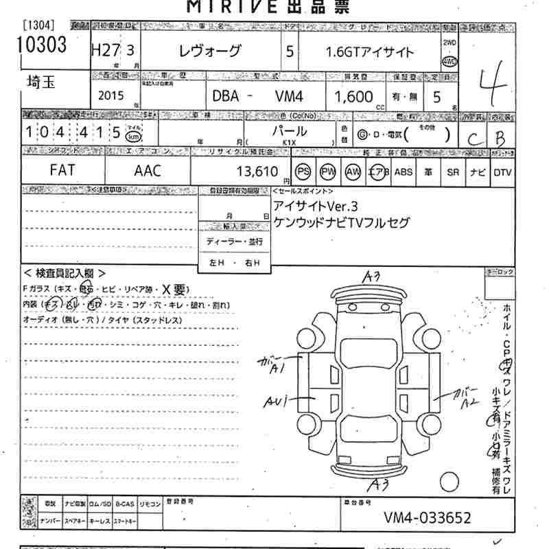 SUBARU LEVORG 1.6GT EYESIGHT - лот 10303